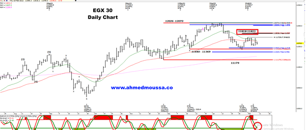“قد يتحرك المؤشر في اتجاه عرضي خلال الجلسات القادمة ما بين 11700 ومستوي 11570 قبل ان يعاود الصعود لإعادة التجربة علي 12069”