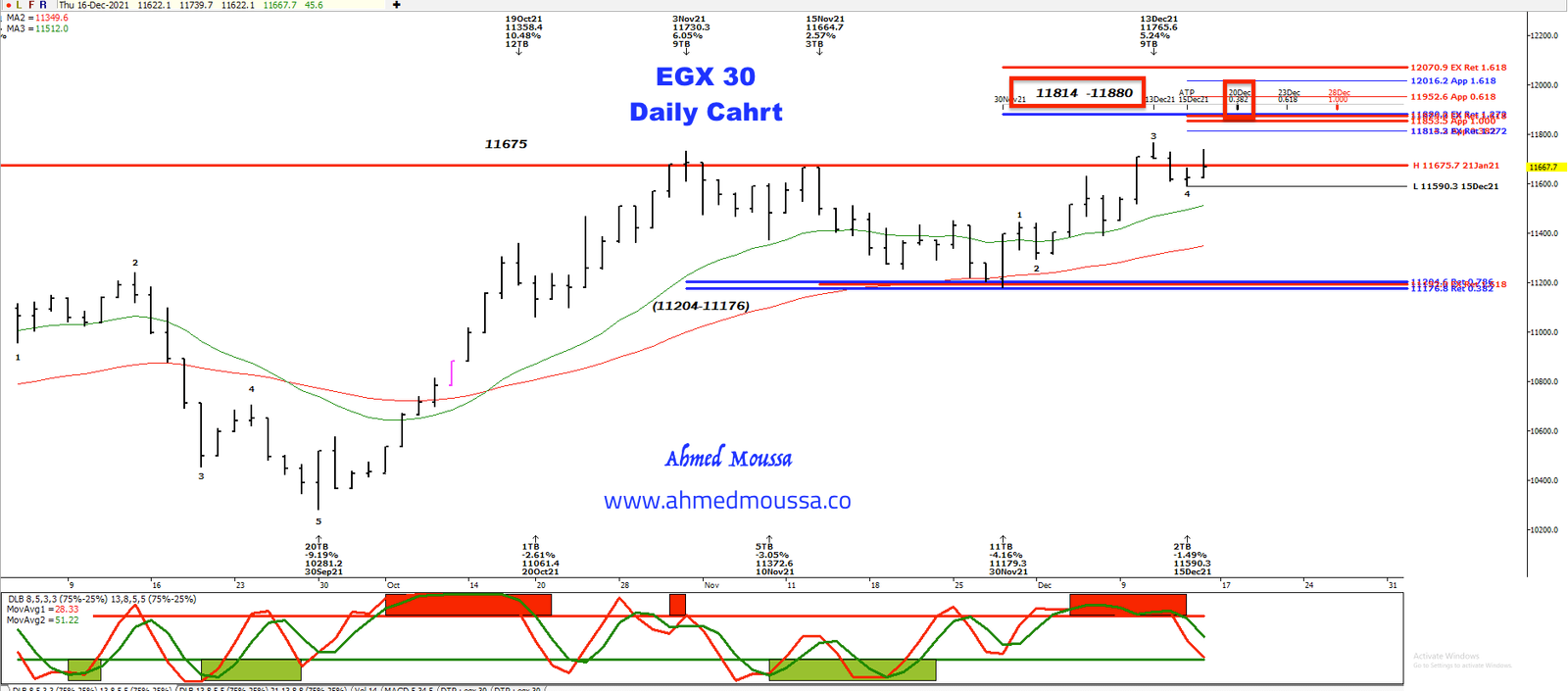 كما موضح بالشارت المرفق ،، اصبح الموشر يستهدف المستويات 11814 – 11880