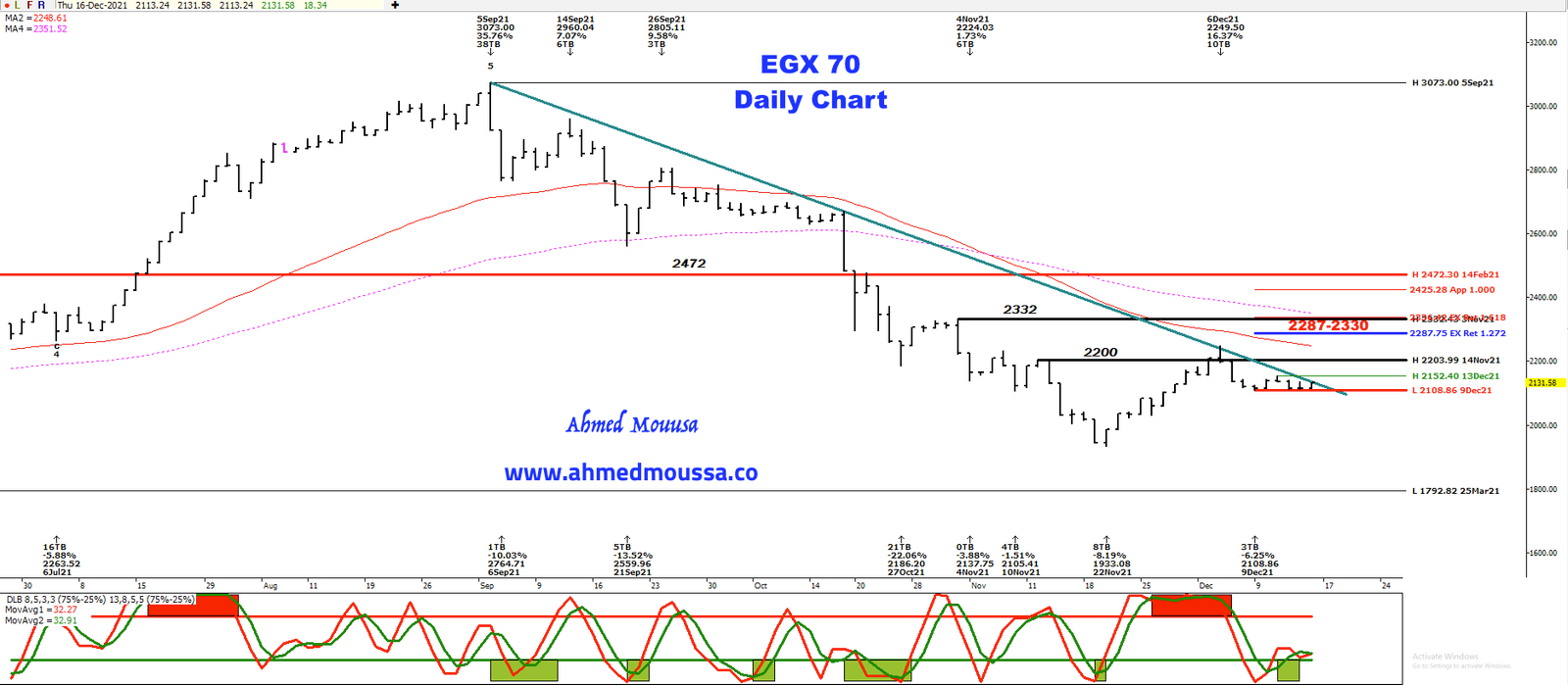 لاستمرار الصوره الايجابيه لابد من الاغلاق اعلي مستويات 2152 ،، والتي تؤكد الاغلاق فوق الترند الهابط ،،