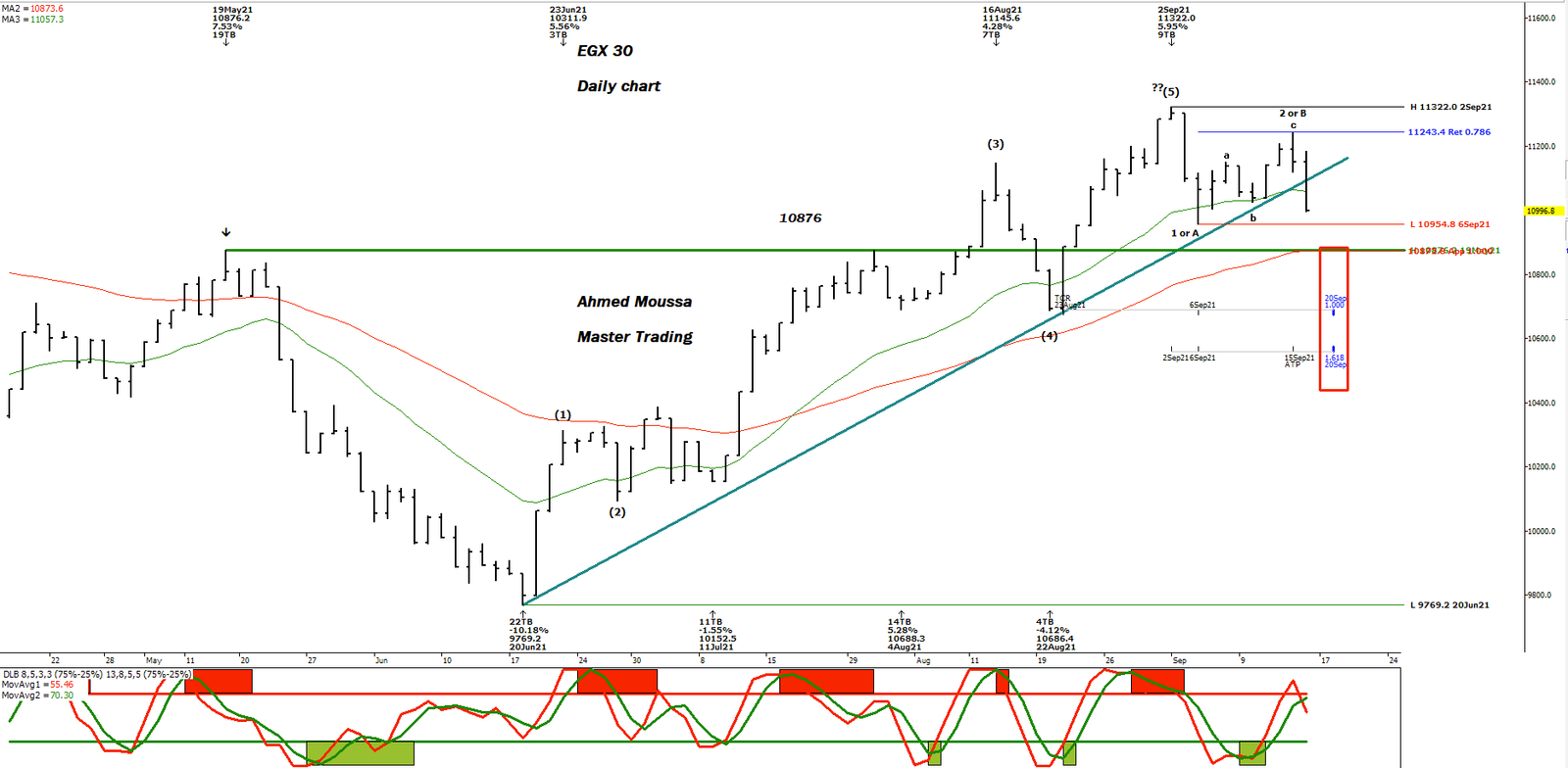 بالاضافه لوجود مستهدف زمني لتكوين قاع الموجة الهابطة بتاريخ ٢٠ سبتمبر (يعني علي جلسة يوم الاثنين)